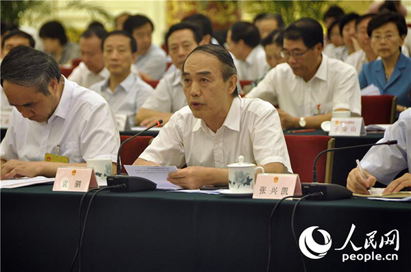 全國人大常委會委員袁駟提問。人民網(wǎng)記者劉茸攝