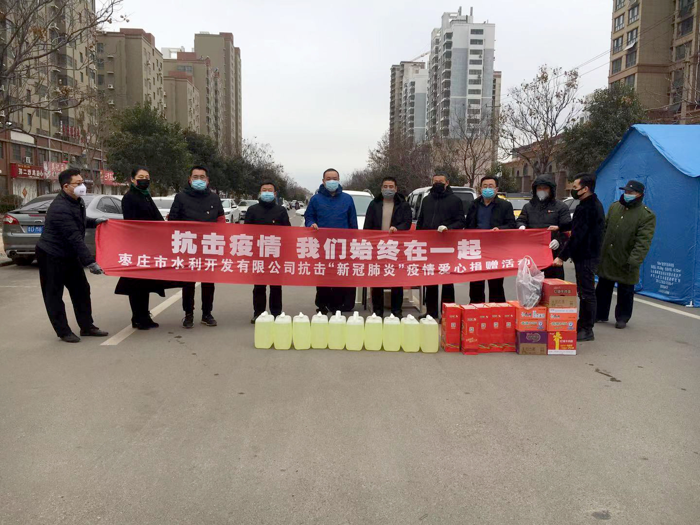 新型冠狀病毒肺炎疫情,牽動著國人的心。在此嚴(yán)峻時刻,2020年2月5日上午,棗莊市水利開發(fā)有限公司執(zhí)行董事兼總經(jīng)理岳磊,黨支部委員、副總經(jīng)理劉偉東,副總經(jīng)理鄭濟(jì)營及工會主席、副總經(jīng)理郝玉同等一行前往棗莊市中邵莊社區(qū)組織開展了抗擊“新冠肺炎”疫情獻(xiàn)愛心捐贈活動。為開展新型冠狀病毒防護(hù)工作增添了一份安全保障,為抗擊疫情貢獻(xiàn)了一份力量。