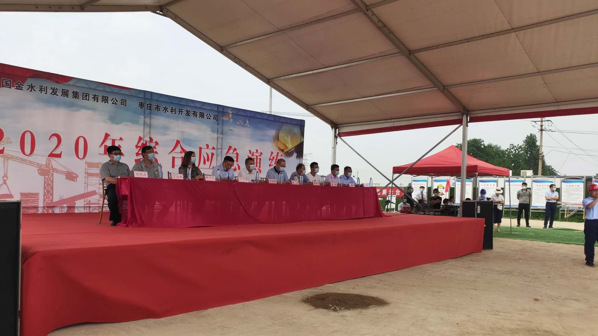 蒞臨現(xiàn)場參加活動的領(lǐng)導(dǎo)和嘉賓有棗莊市城鄉(xiāng)水務(wù)局黨組成員、四級調(diào)研員劉紹峰,工程建設(shè)科科長張振龍,市中區(qū)城鄉(xiāng)水務(wù)局副局長楊蘭芳,規(guī)劃科科長張翔,山東省魯南救援中心原副主任、省安全生產(chǎn)專家宮德卿,山東國金水利發(fā)展集團有限公司黨委副書記、總經(jīng)理趙云,黨委委員、副總經(jīng)理、棗莊市水利開發(fā)有限公司黨支部書記宋慶國,工程和安全管理部部長施曉森,辦公室主任邱來方,棗莊市水利開發(fā)有限公司執(zhí)行董事、總經(jīng)理岳磊等。